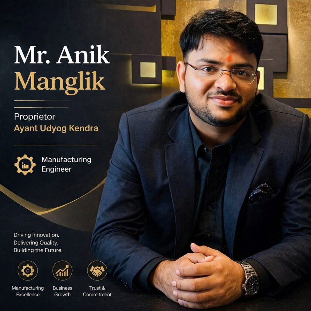 AYANT UDYOG KENDRA is a well-established name in electrical fittings, hardware, locks, and door fittings, serving customers with reliability and trust since 1991. Founded by Mr. Akhil Kumar Manglik and Mrs. Babita Manglik, the business has built a strong reputation through decades of quality products and honest service. Today, the legacy continues under the leadership of Mr. Anik Manglik.
